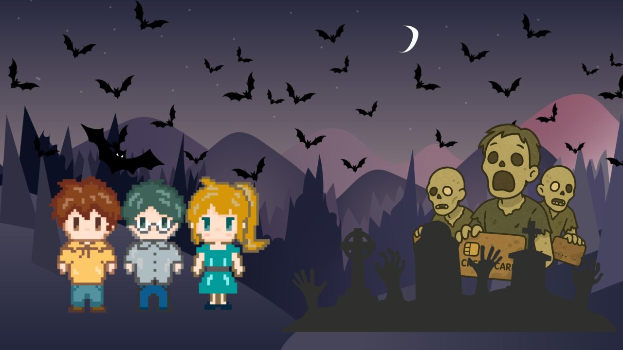 朽ちたクレジットカードを握ったゾンビたちが現れる